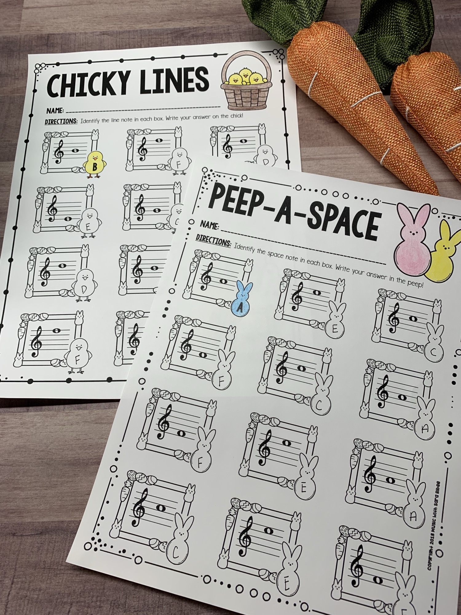 This adorable and effective group of Easter music worksheets are great for reinforcing knowledge of line/space, treble/bass, dynamics, and note/rest. There’s even some coloring pages!…
